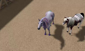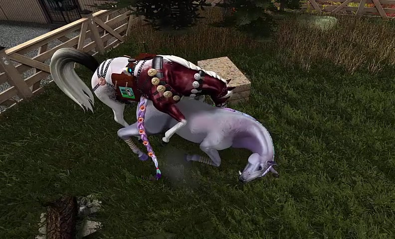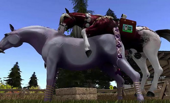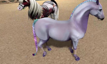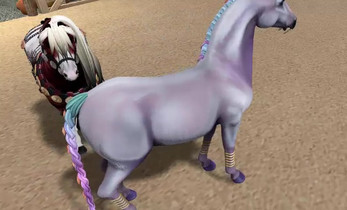 At the edge of the meadow stood the Lavender Fantasy Mare. Her shimmering lavender coat reflected the pale sunlight, and the small fin-like scales along her spine glowed faintly as if holding traces of ancient magic. She lowered her head to the grass, but her bright eyes watched the horizon carefully. Not far from her stood the Wrapped Desert Stallion, wrapped in layered cloth that fluttered gently in the breeze. Though he had traveled deserts and harsh lands far away, this green valley was unfamiliar to him. Still, he stood calmly, patient and steady, like a guardian watching over the peaceful clearing.
